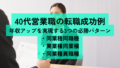 この記事では、44歳で営業職から営業職へ転職し、年収アップもさせた私の経験をもとに、40代営業職が職務経歴書の通過率を上げるコツ5選をお伝えします。